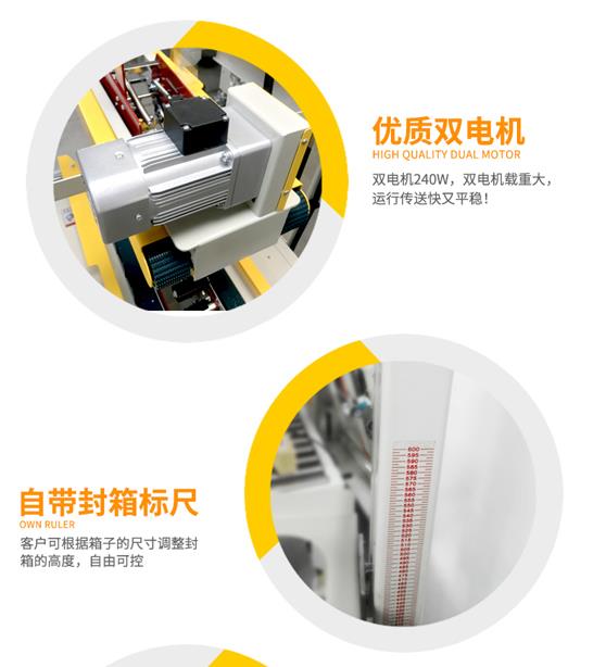 上下驅(qū)動(dòng)一字型自動(dòng)封箱機(jī)采用上下馬達(dá)驅(qū)動(dòng)皮帶輸送封箱,上下皮帶驅(qū)動(dòng)封箱穩(wěn)定性高。而且這款封箱機(jī)具有廣泛的用途,適用于紡織、日用百貨、家用電器、藥品、食品、化工、輕工等各種行業(yè)。本款自動(dòng)封箱機(jī)可單獨(dú)進(jìn)行封箱作業(yè),亦可與充填、捆包配套成流流水線(xiàn)使用。